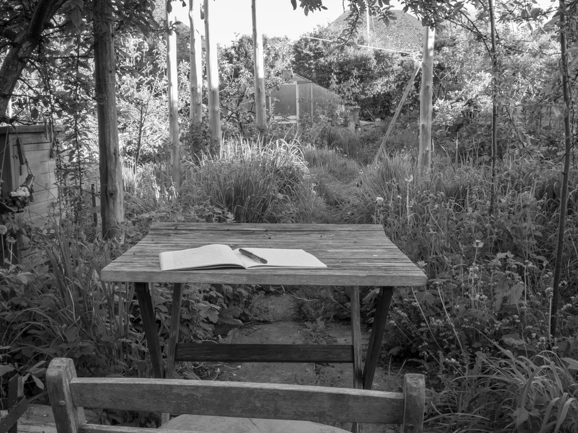 This garden is amazing. The poles came from your wood, Jonathan, and the hazel. It is your funeral today. You never saw this. This is where I sit every day in the summer, under the plum arch. The collared doves are moaning and a goldfinch sings – the song containing the call. The distant road files past. Here is wood avens, forget-me-not, dandelion, herb robert, red campion. The yellow plums are tiny green pips at the moment – they produced fifty pounds last year! There are grasses with beads of dew on their tips. Behind me I can hear the sparrows arguing, and one or two fly past, trying to get away. I hear the wings of a wood pigeon clapping. I didn’t know you very well, Jonathan. A relation, not a friend. I’m sorry about that. You sold your house and bought a wood, I know that. That is rather wonderful. This morning I saw pictures on Facebook of the making of your coffin, and I know something I did not know before – how you were loved by your friends. I’m sorry I wasn’t your friend – a blackbird has landed on the top of the mast just beyond the end of my garden. Blackbirds often perch on the top of the poles in my garden – my Alhambra pillars – peeled western red cedar from your wood and arranged here to give me a flavour of the Alhambra. Beside me hazel sticks support the plum arch. I got those from you too, not long ago. Yesterday I hung bird feeders on them and just now a gang of sparrows turned up – don’t mind me, I thought, and they didn’t. It’s quite cool this morning, early, but it will be hot later. A wood pigeon calls, ‘Fetch two poles Josie, fetch two poles’ and another answers. I pause and look down at my wild garden, my wilderness. A wilderness full of fruit trees and wild flowers and herbs. I can make a salad from this garden, a leaf here, a flower there. I can make herb tea – peppermint, nettle, herb robert, raspberry leaf.