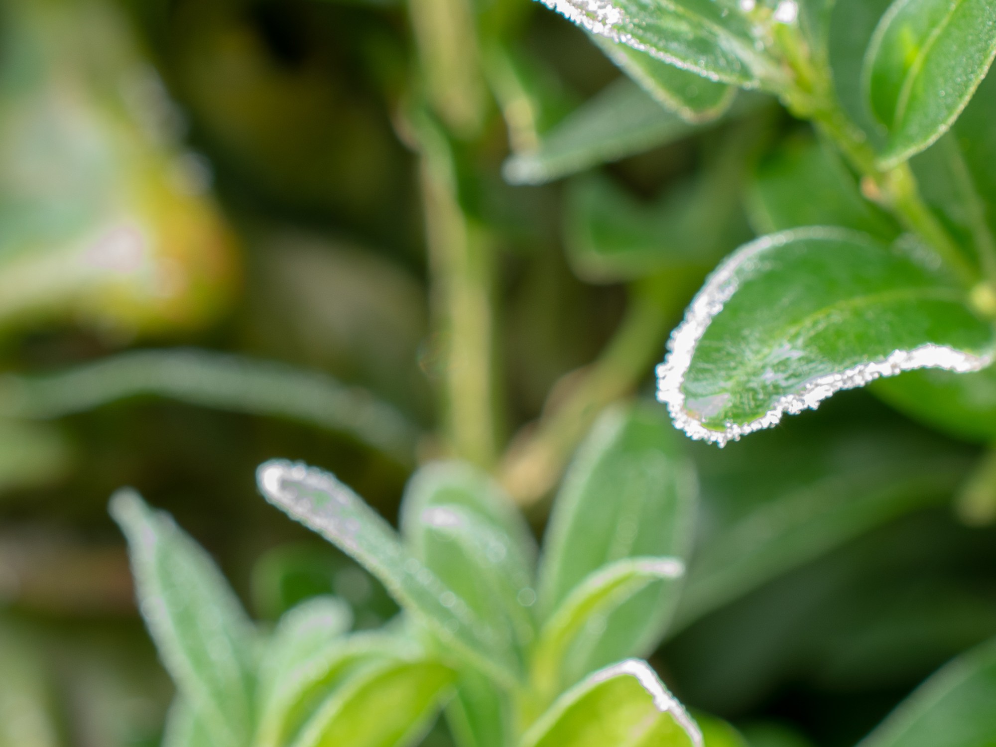 The picture is of a frosty leaf of a box hedge in my garden. I am cutting it into an elliptical shape, with one of the centres the trunk of the ceanothus tree that grows out of it. Other plant activity this week has been ordering seeds. I have a plan to grow a plant combination that I have heard about that has been used over many centuries by native Americans. The three plants are known as the Three Sisters, Corn, Squash and Beans. The squash covers the ground, the corn rises high and the beans clamber around the corn.