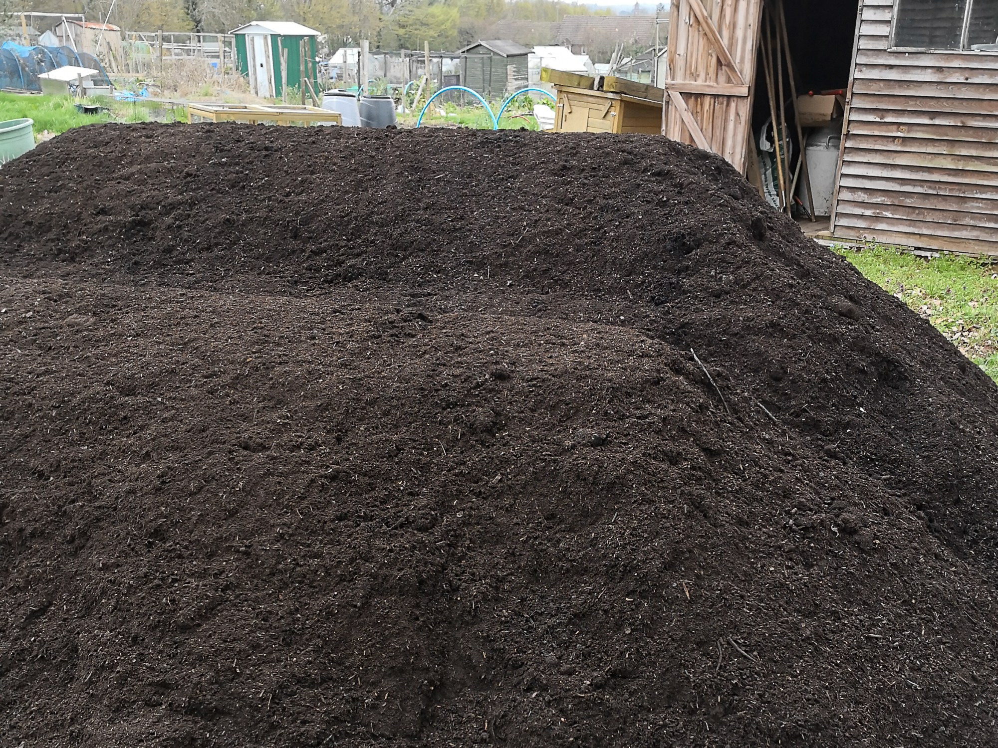 The soil conditioner arrived. Soil conditioner is very good for plants and edaphon, but it also induces happiness in humans. Well, this human! Other gardeners at the allotment look at the huge heap and mutter about the work needed to move it, or give me advice on filling the wheelbarrow in the most efficient way, but I look at it with joy. I have this crazy no-dig idea, and it is an experiment, and I’m not doing what other no-diggers do, but to begin I need lashings of organic matter, to give life to the earth, to make it better.