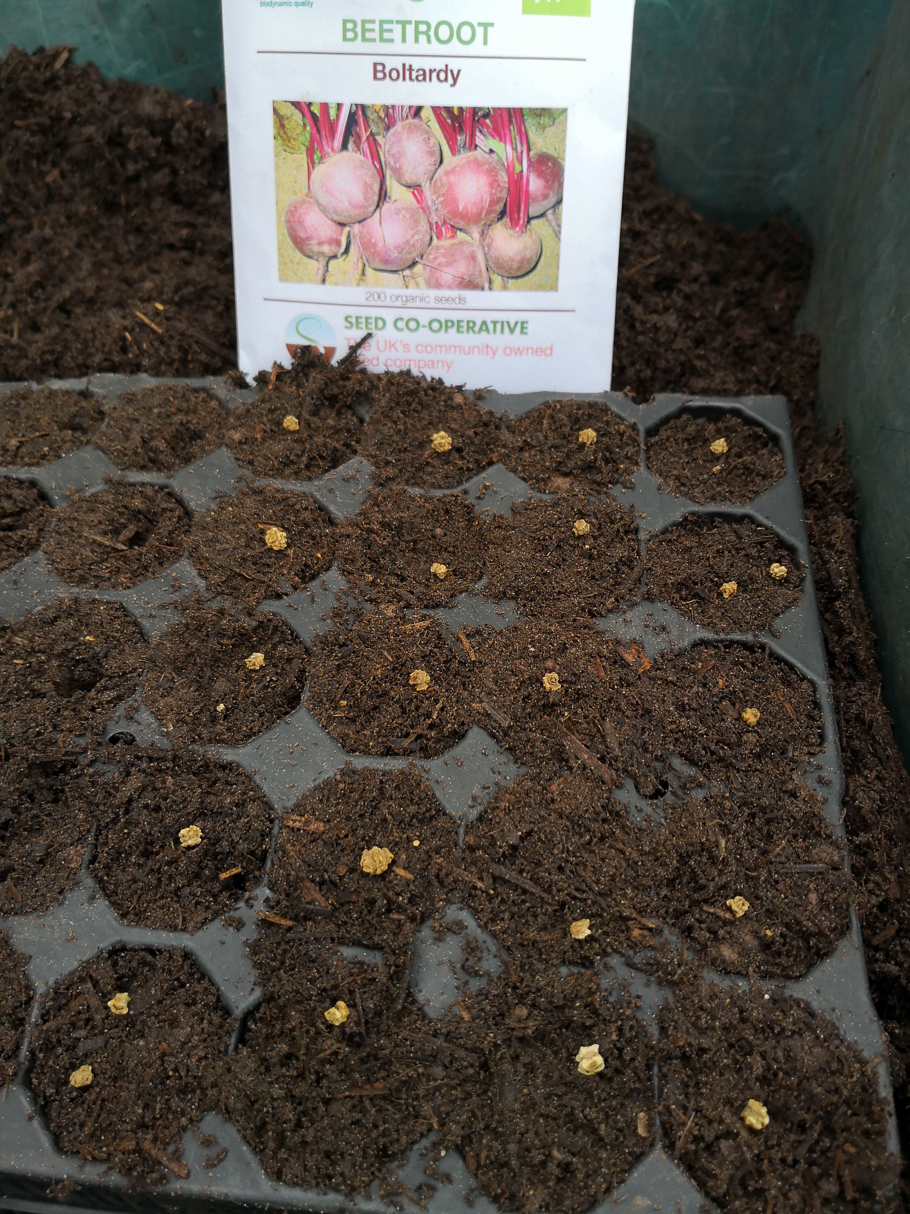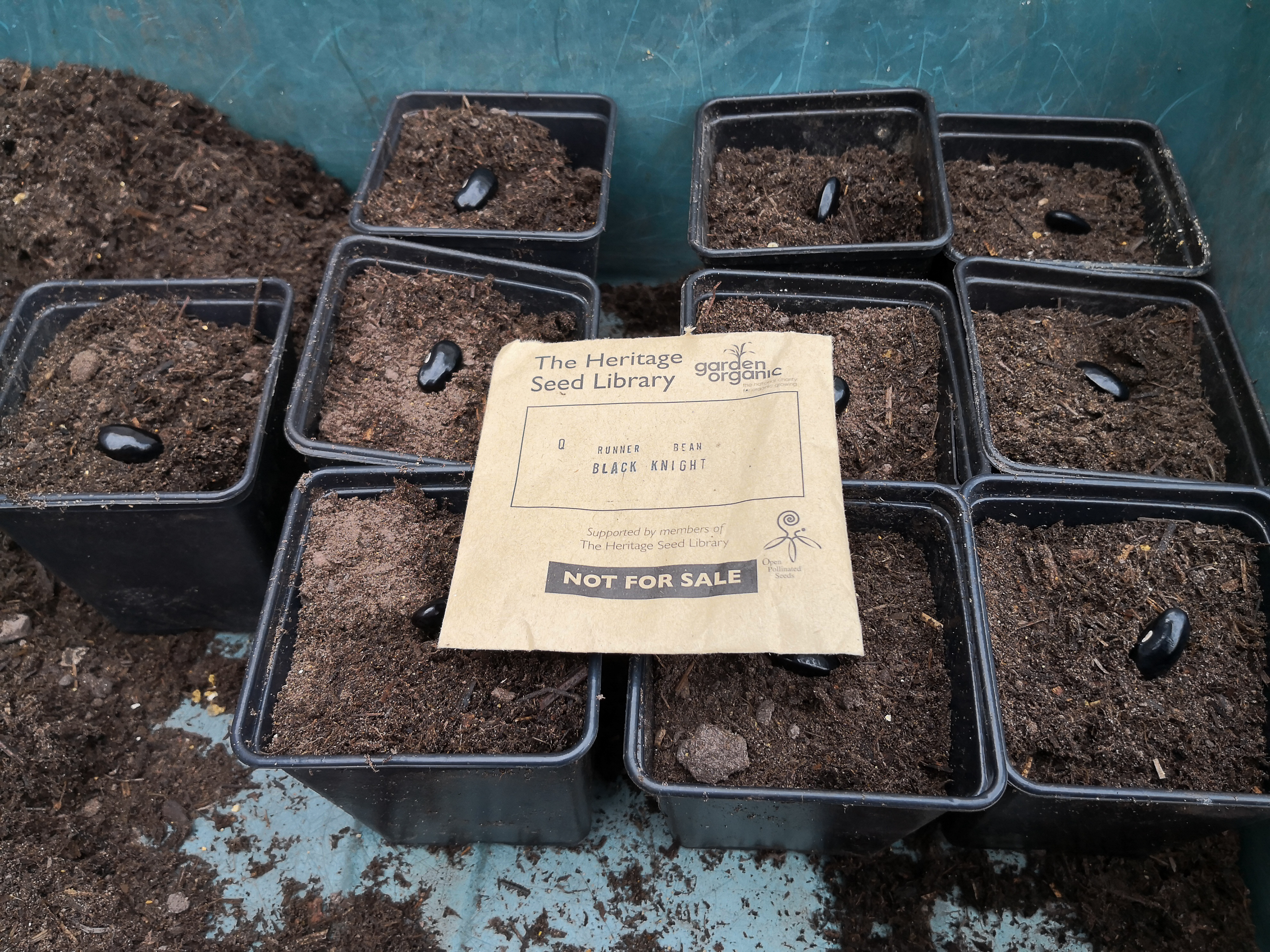 It has been an exciting week. Louise found a wormery on Freecycle, and we will be setting it up over the next few days. Any worm tips most welcome. The plants for the native American combination of sweetcorn, squashes and beans are coming together. The beans above are the last to be sown, the squashes and corn are growing well.