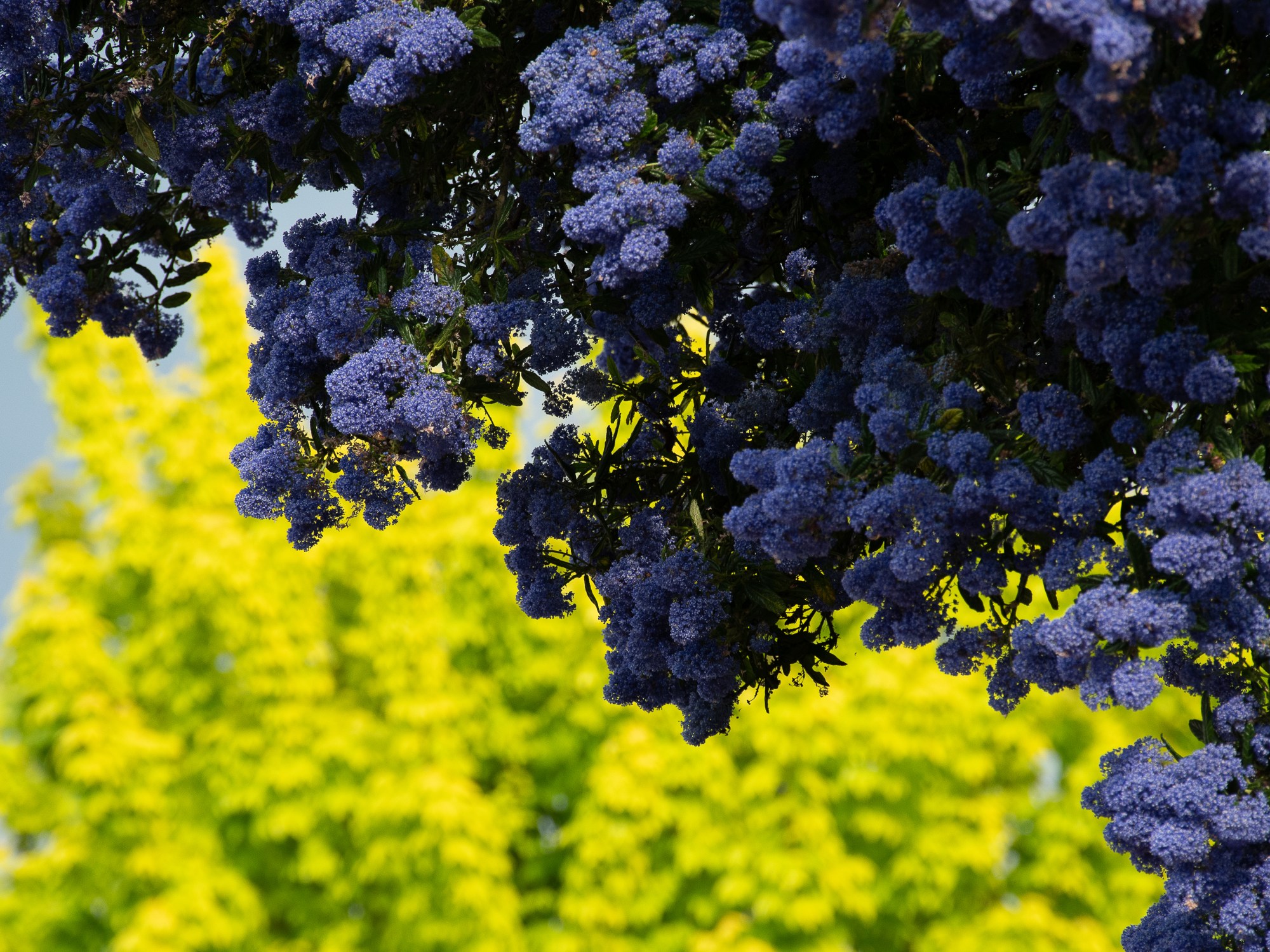 this week is of the Ceanothus in our garden, which has been buzzing with bees for several weeks, and is now beautifully contrasted with an Acer in a neighbouring garden.