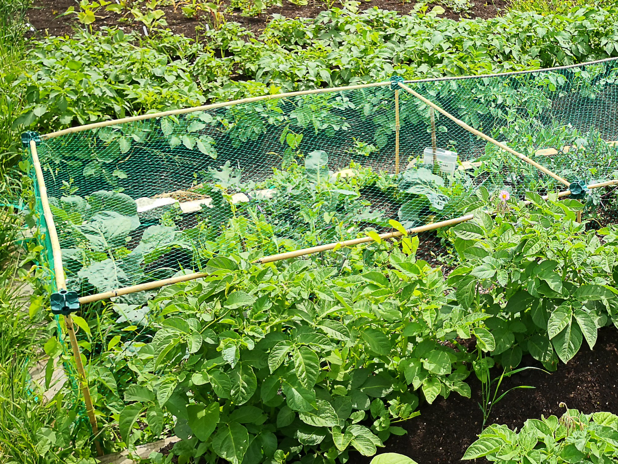 I was standing on my allotment a couple of days ago and I suddenly looked at all the plants that are growing there and I was amazed. When you are there every day you don’t notice the changes. I looked at all the life, the things I have planted and the plants that are just there. I had tunnelled into the soil around the potatoes and found some lovely new potatoes. These are the potatoes I planted on 22nd March without any digging, nestling the tubers into the soil under the cardboard which was under a thick layer of compost. And here in my hand was food. Delicious fresh food whose entire history I knew.