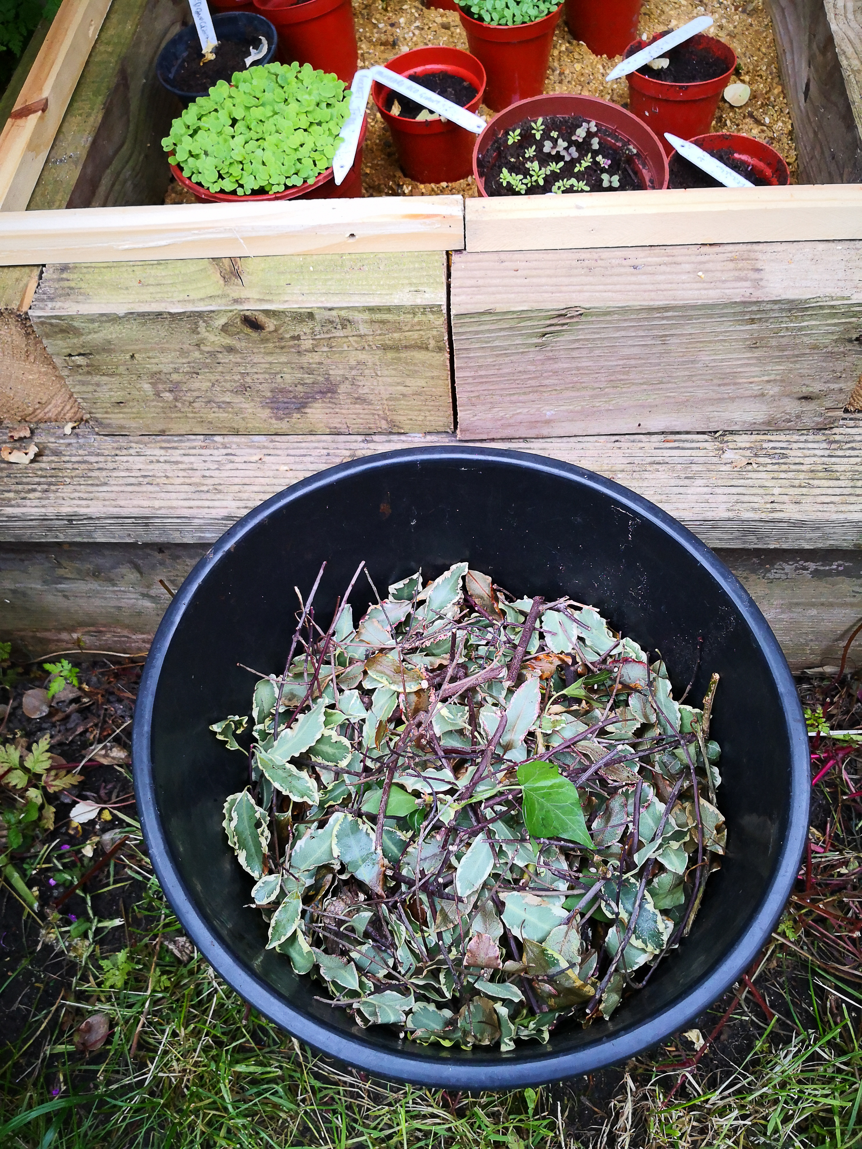 My purpose, my desire, is to distill this feeling, to somehow bottle it and examine it. Of course I can’t do that, and anyway what’s the use of a preserved specimen? What matters is growing vegetables. That’s what this is all about. And I will put my week in pictures below, including some fabulous leaves that I photographed from the top of a multi-storey car park in Winchester, all glossy with the rain. My world is a forest.