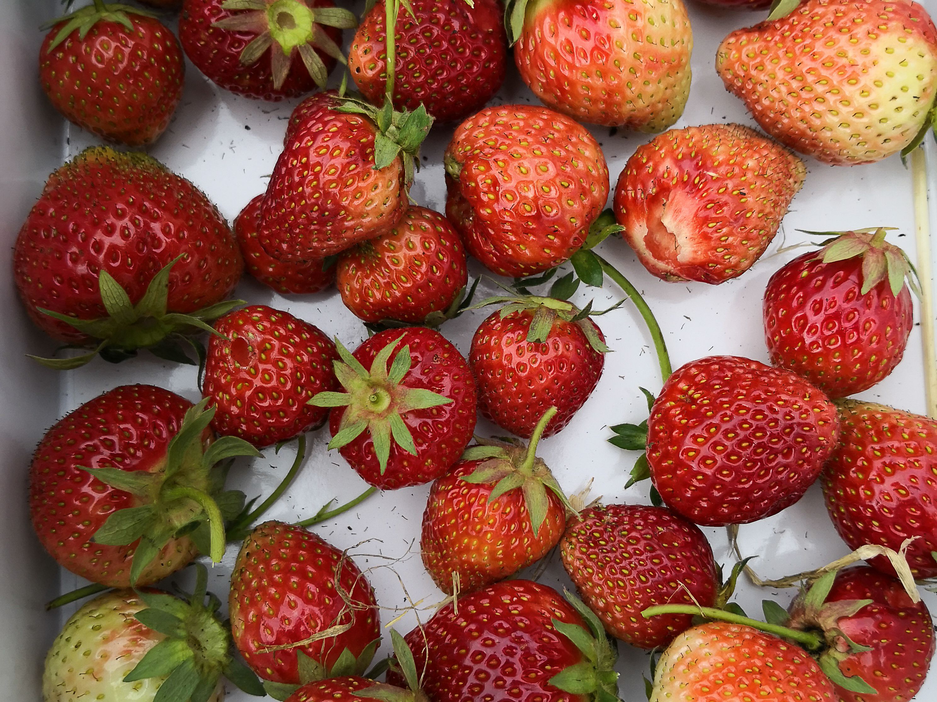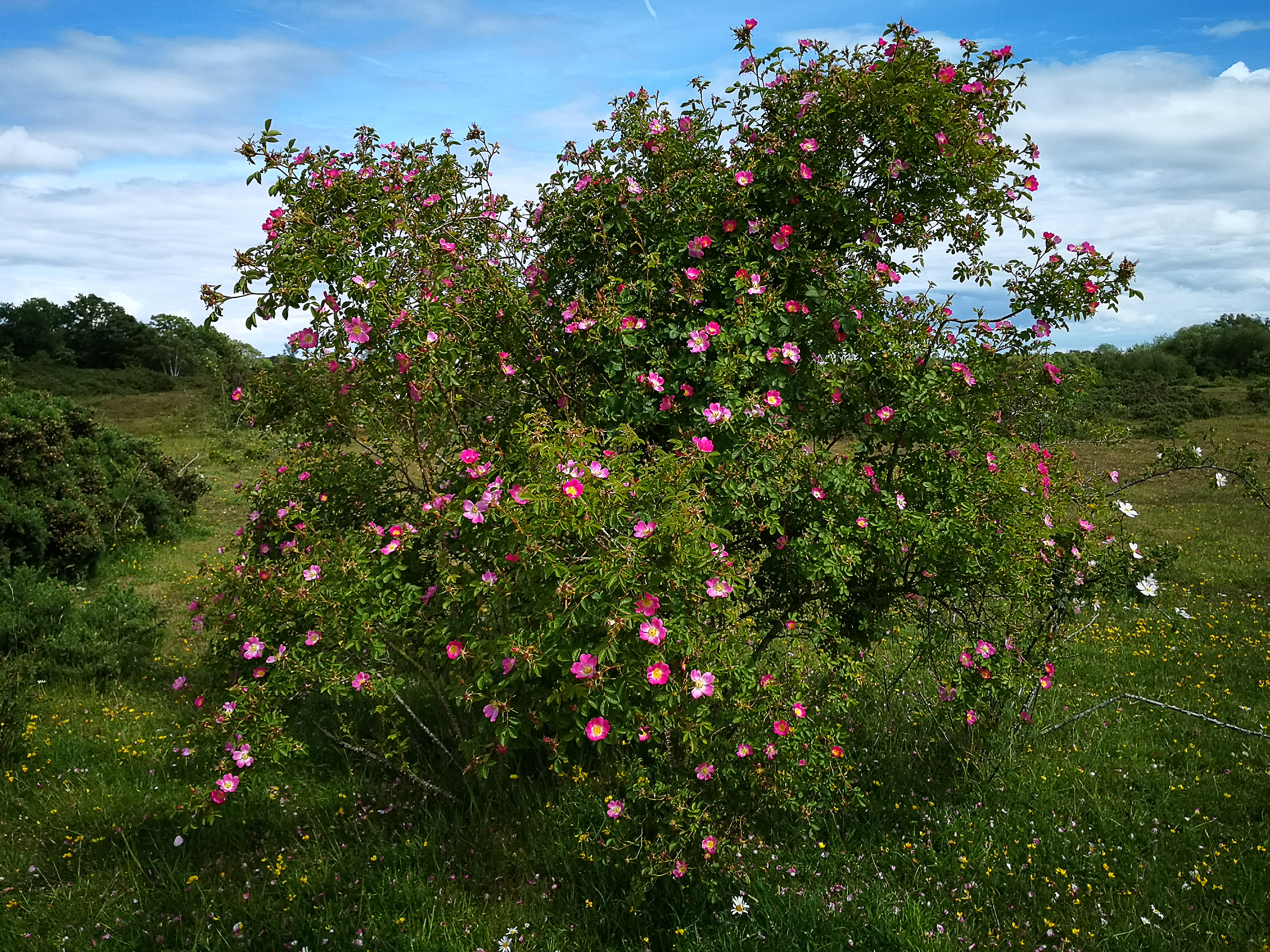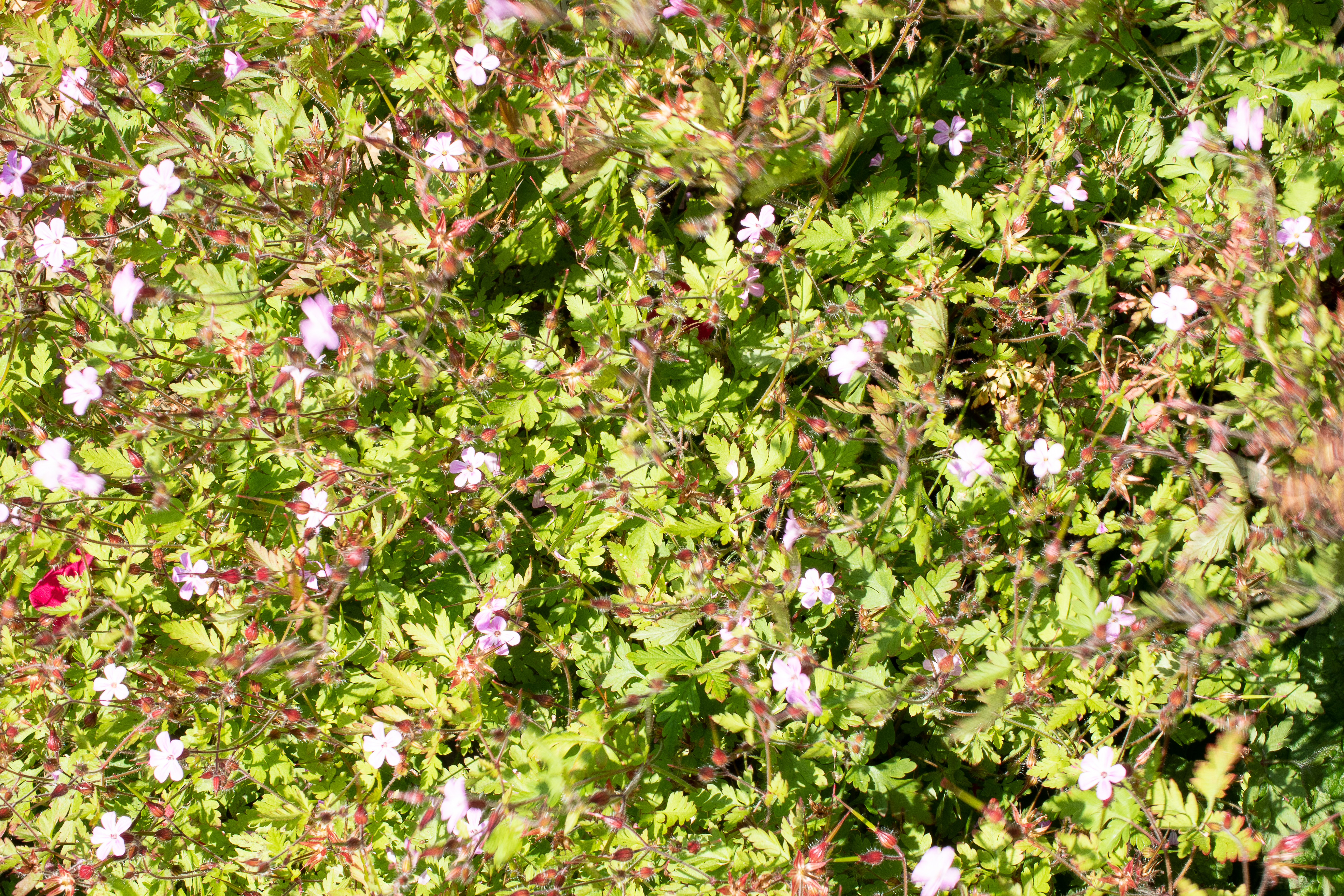 Herb robert, throat of sweet peat and a wild, wild rose, so beautiful, growing on Greenham Common. A cobweb, some strawberries, shallots, garlic. A frog who eats slugs, the three sisters: corn, beans and squashes; more strawberries.