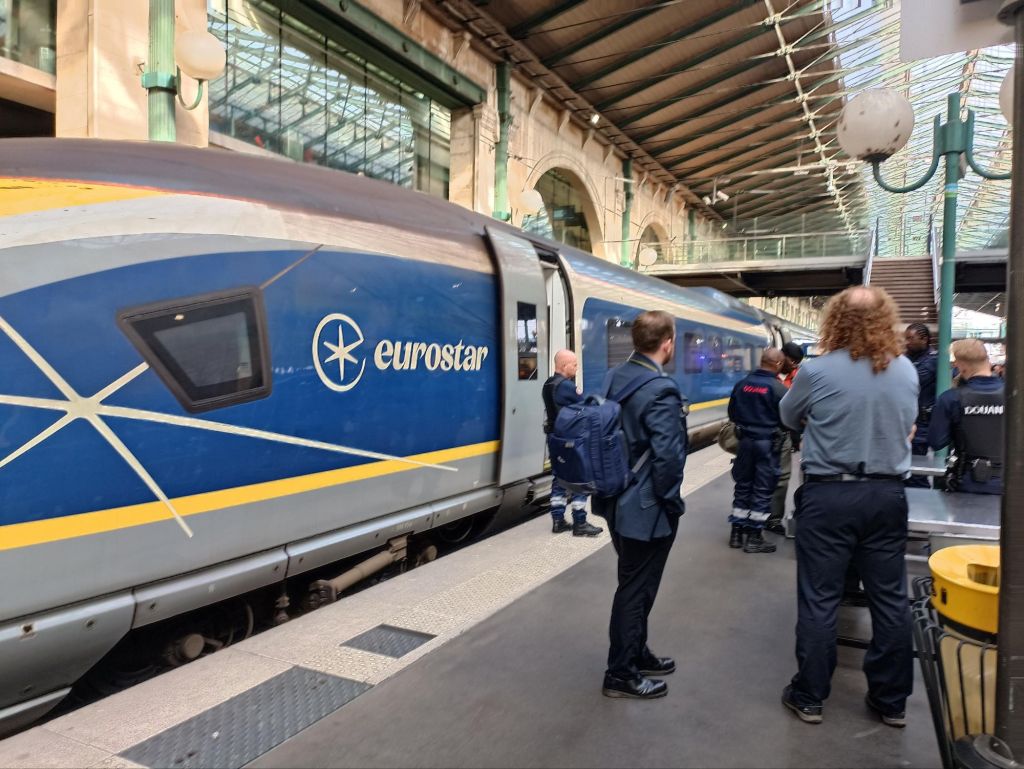 Now the sun is out and the leaves of the dandelion are glittering. The flower is there too, a yellow tuffet on a pale stalk. Above there are a few white flowers on the Mirabel plum, yellow fruit potential. That was yesterday, at home. Today I’m on the Eurostar heading for Paris.
