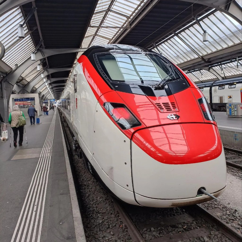On the way to Zurich. Suddenly very tired. Headphones on, listening to something. Music.