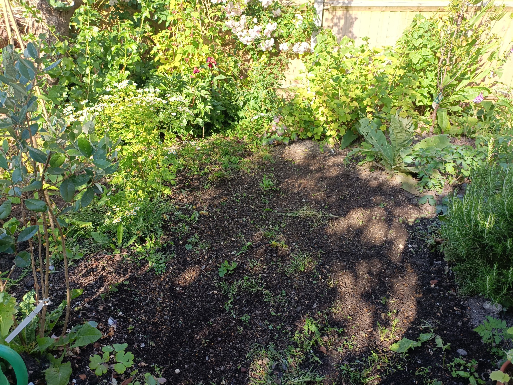 The idea is to create a small lawn, or soft grass area for handstands, picnics or just lying on to stare at the sky. Last year it was all vegetables and fruit – that is after all the point of this garden. A food forest. This year I’m more open-minded. People live in this garden and love it. It must do everything – although football is confined to the park.