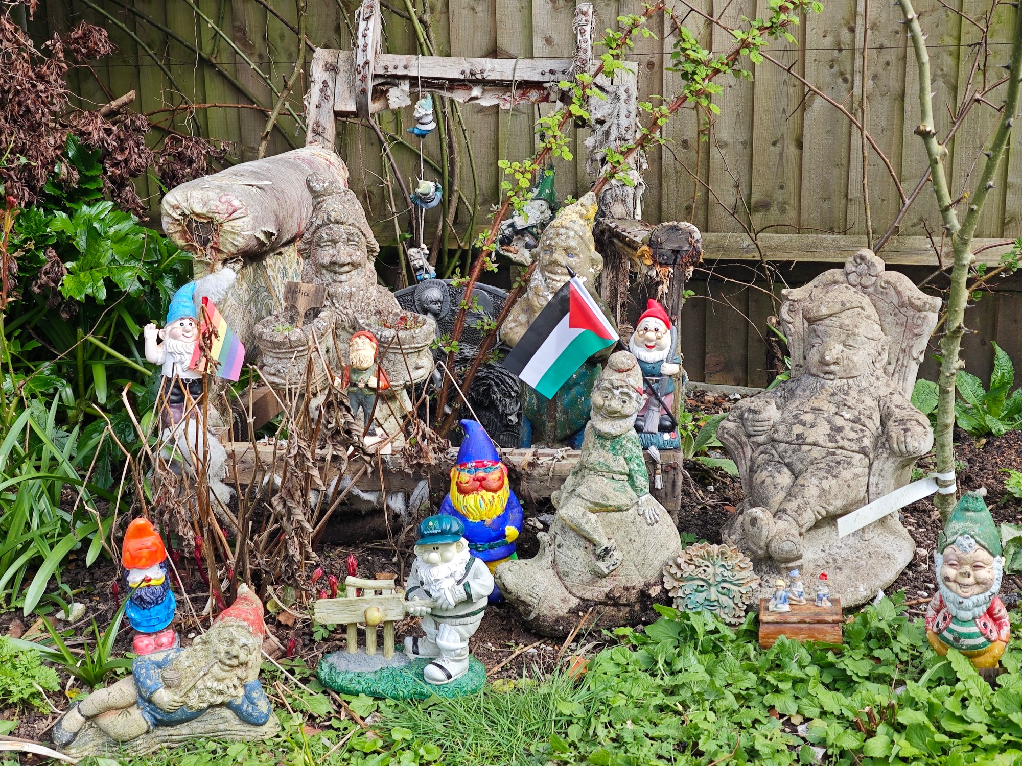 Indeed Belsizio Andranticlaw, the one standing on the front bar of Dad’s Chair (see https://sabastani.com/2025/01/27/dads-chair/ ) is a direct descendant and clone of the original gnome imported from Germany by Sir Charles Isham in 1847, therefore having very close aristocratic antecedants. He doesn’t care either.